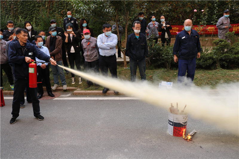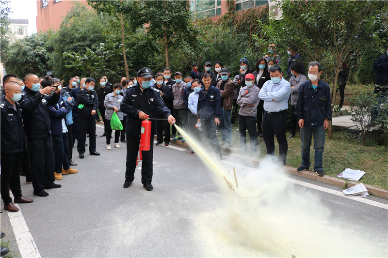 公司举办消防培训演练 为小区安全保驾护航