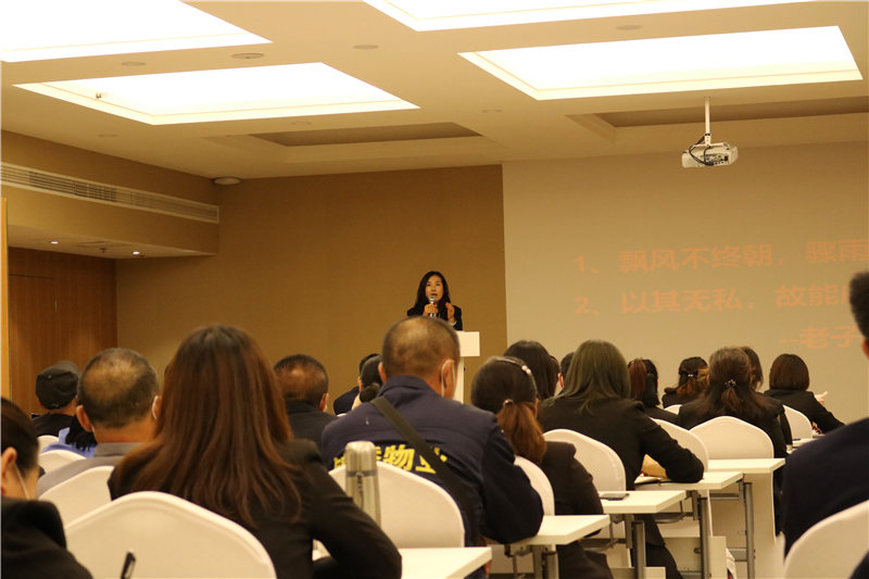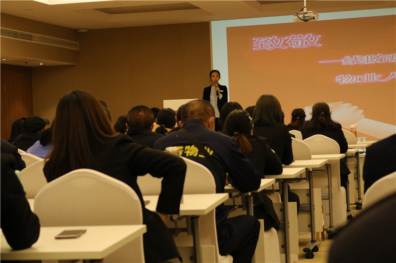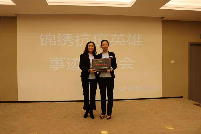公司常务副总宋燕讲话,她说:今天,为我们做抗疫英雄事迹宣讲的9个单位代表,所讲述的事迹,是全体锦绣人戮力同心、奋战抗疫的缩影。在面对疫情防控艰难时刻,没有一人退宿,全部夜以继日,甘于奉献,用辛劳和坚守、奉献和汗水,筑起了疫情防控的坚强防线,谱写了锦绣人战“疫”凯歌,为保护业主的生命安全和身体健康作出了不可磨灭的贡献。她代表公司,向全体锦绣人表示崇高敬意和衷心感谢!宋总为10单位颁发“抗疫英雄集体”奖牌,称赞他们在抗击疫情的关键时刻,勇挑重担,逆行冲锋,用实际行动彰显了锦绣人的初心和使命!
