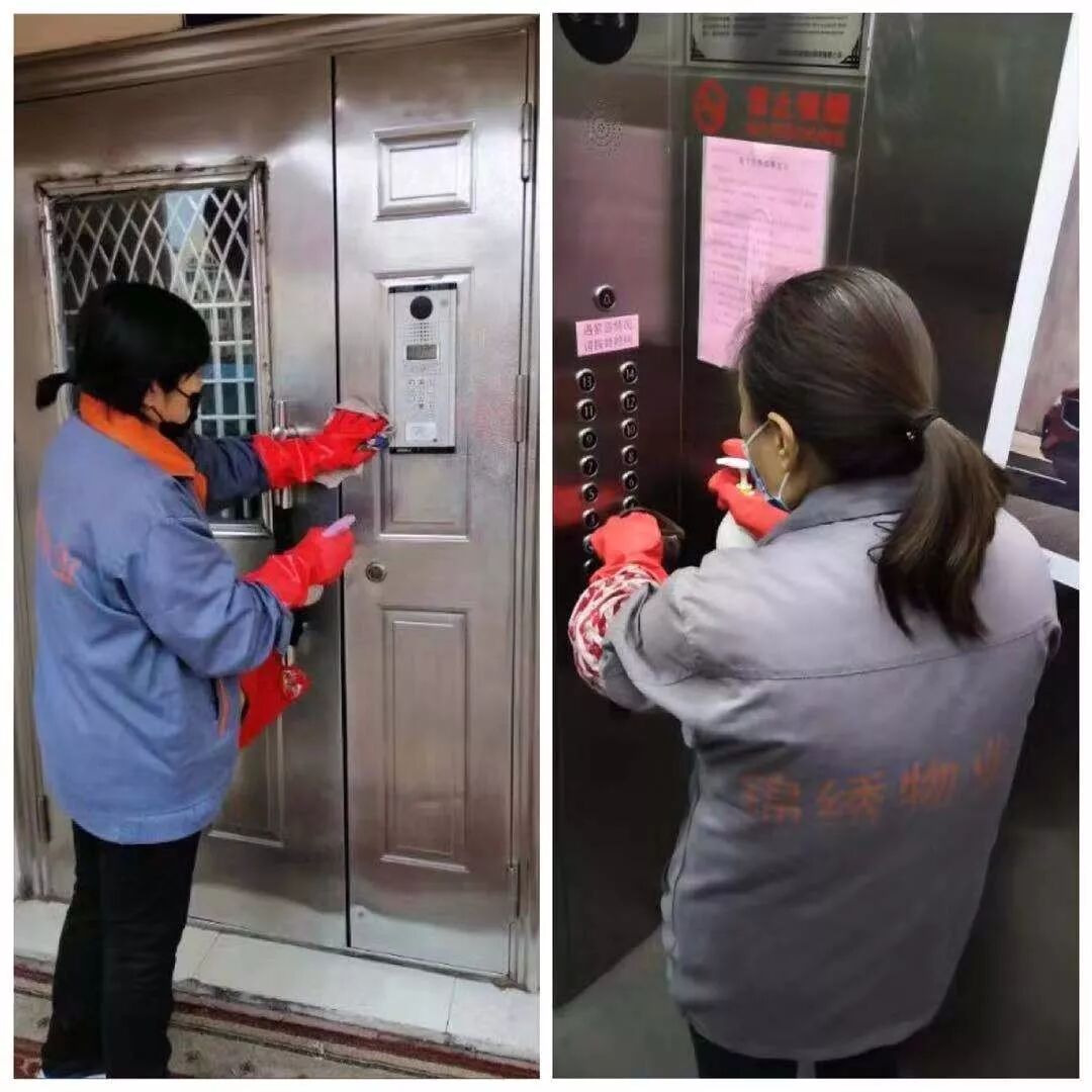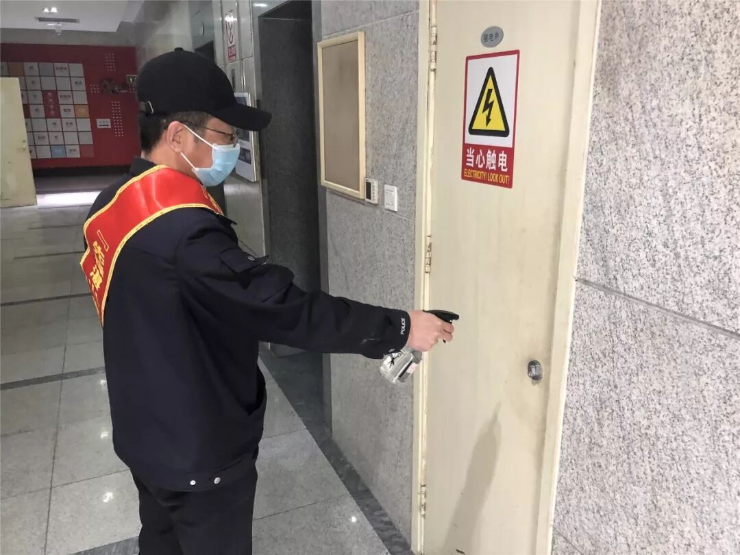 红色物业对楼宇环境进行彻底清扫、全面消杀