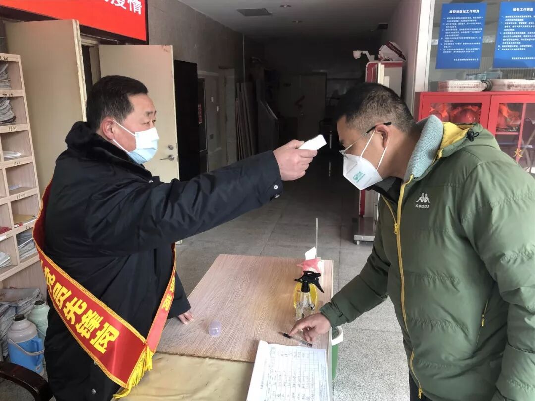红色物业为每一个进入大楼的人员测量体温